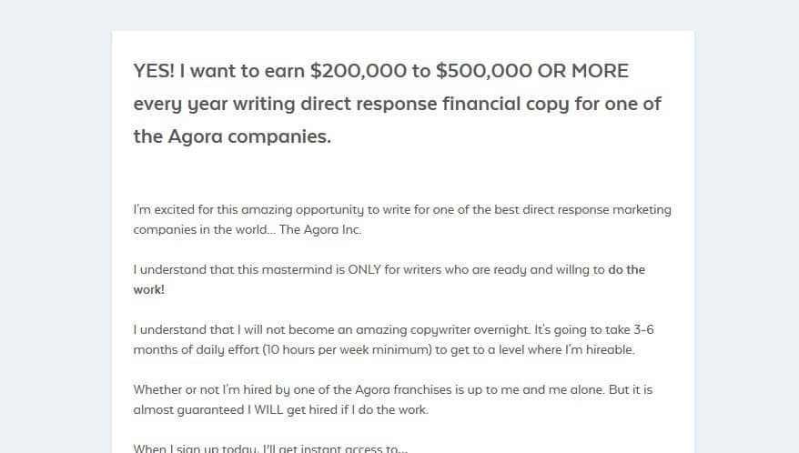 YES! I want to earn $200,000 to $500,000 OR MORE every year writing direct response financial copy for one of the Agora companies.